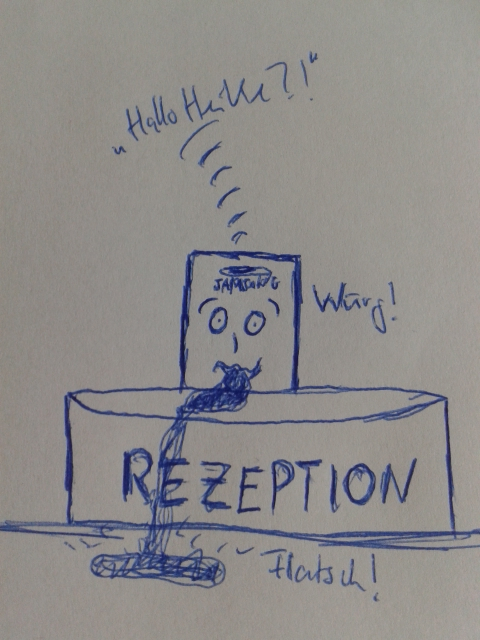 … in der whatsappgruppe Verfasst vondermeckerling14. Juli 2017Veröffentlicht inBegriffsstutzen, Neulich ...Schlagwörter:Empfang, Funkloch, Schlechter … war zu lesen: „Ich habe hier einen megaschlechten Handyempfang“ Und ich dann so: Übelkeit am Arbeitsplatz Erzähl es weiter: Klicke, um auf X zu teilen (Wird in neuem Fenster geöffnet) X Klick, um auf Facebook zu teilen (Wird in neuem Fenster geöffnet) Facebook Klick, um auf LinkedIn zu teilen (Wird in neuem Fenster geöffnet) LinkedIn Klicken, um auf WhatsApp zu teilen (Wird in neuem Fenster geöffnet) WhatsApp Gefällt mir Wird geladen … Ähnliche Beiträge