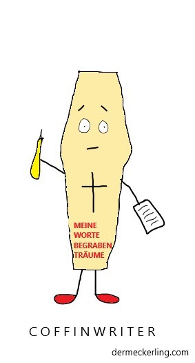 Der Coffinwriter denkt sich: „Was die können, kann ich auch!“ Er verfasst unwissentlich schlechte Texte & Slogan, vereinbart mit den Kunden, dass seine Dienstleistung erst bei messbarem Erfolg bezahlt werden muss. Dieser bleibt leider aus. Sowohl beim Kunden, als auch beim Coffinwriter. Schade. Deckel drauf.