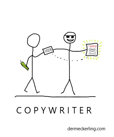 Der/die Copywriter/in oder auch Texter / Texterin, verfasst u. a. Werbetexte für Produkte und Dienstleistungen. Ziel der Texte ist, den Endkunden zum Kauf zu animieren. Klappt bei der vorher emittelten Zielgruppe sehr gut.