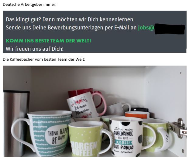 Nicht mehr alle Tassen im Schrank? Morgenmuffel? Menschenhasser? Übernächtigter Panda? Dann bist Du bei uns genau richtig. Komm ins beste Team der Welt. Jetzt.