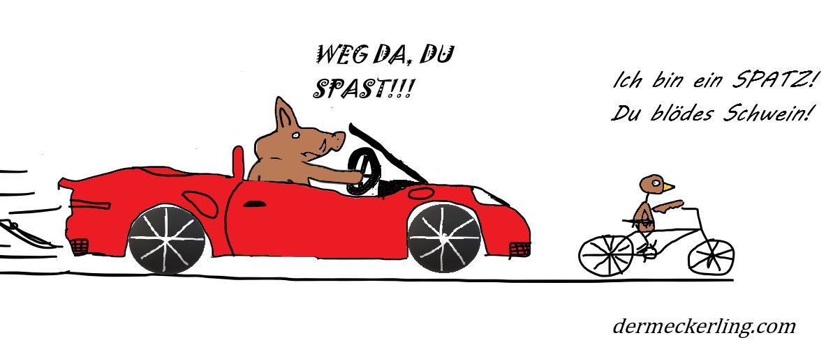 „Der fährt wie ne Wildsau!“ ist auch so’ne gängige Redensart, die einem beinahe täglich begegnet. Kann man sich schwer vorstellen, wie sie das hinbekommen sollte. Auf jeden Fall würde sie Automatik fahren. Dann könnte sie die linke Hufe komplett außen vor lassen und sich voll auf den Straßenverkehr konzentrieren. Oder aufs Handy. Schön Sprachnachrichten schicken„Autofahren wie ne Wildsau“ weiterlesen