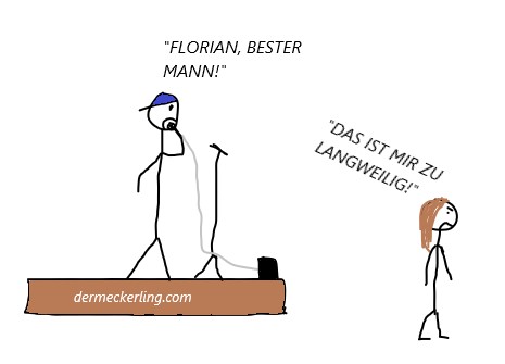 Beim Abgabevorgang in der KITA vernimmt der Super-Dad Klopf-Geräusche aus dem Gruppenraum der Hallodris. Seine Frage nach dem Ursprung wird mit einem untypischen Witz beantwortet, der in schallendes Gelächter mündet. Schön zu sehen, dass die Erzieherinnen auch in schwierigen Zeiten (1. Grippewelle, Ferien, Urlaub) nie ihren Humor verlieren.